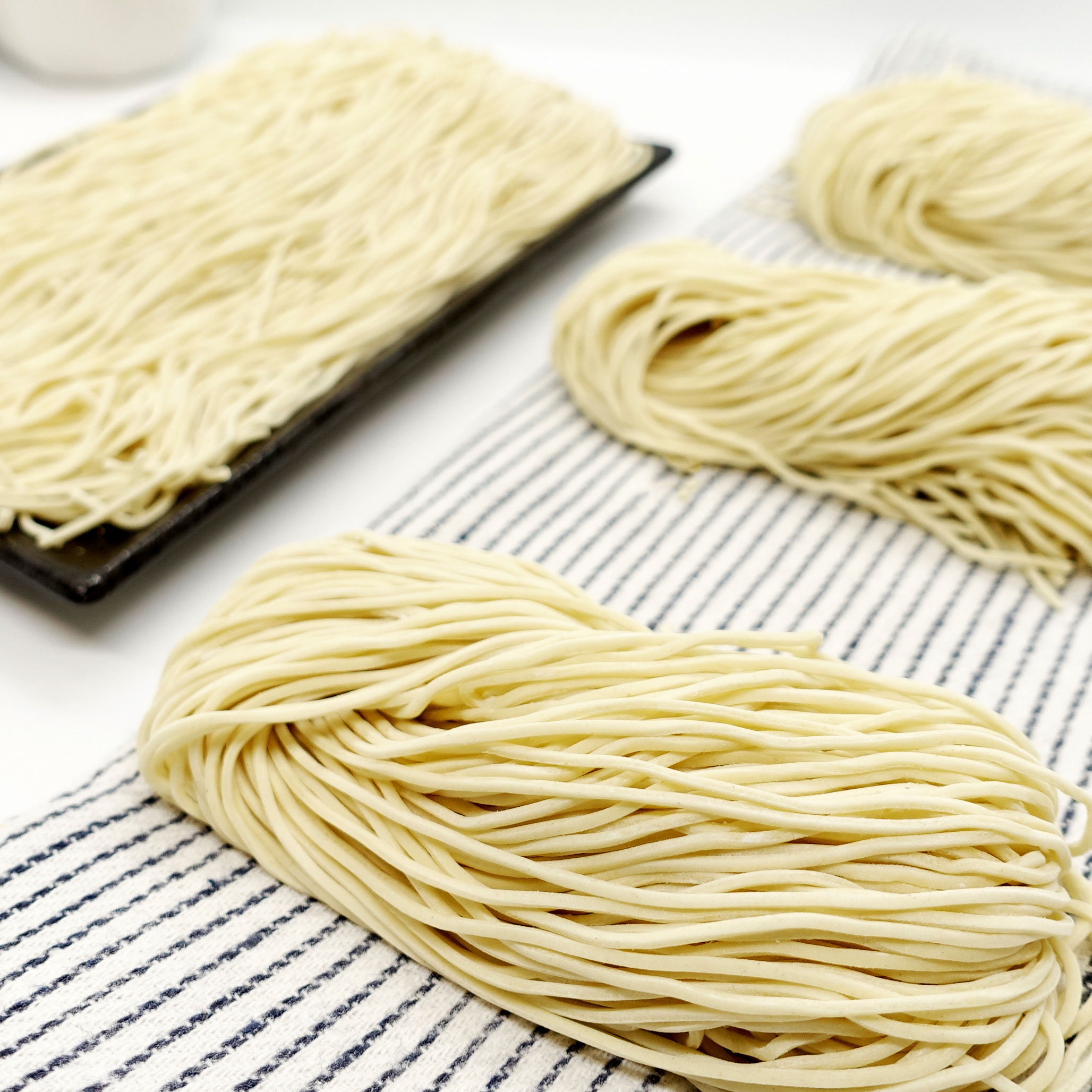 Megah Mee’s Hakata Ramen is thin and straight. It is designed to be paired with thick bone broth. Our Hakata Ramen cling together and hold soup in via capillary action, delivering plenty of broth flavor with each slurp.